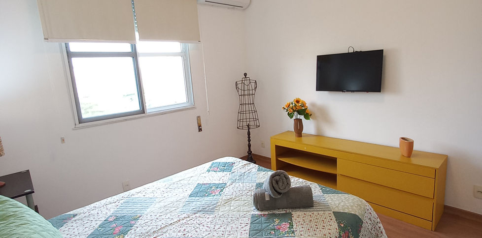 - 1 quarto com cama de casal, TV smart e ar-condicionado split;